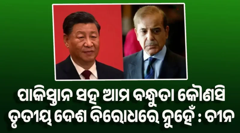 ପାକିସ୍ତାନ ସହ ଆମ ବନ୍ଧୁତା କୌଣସି ତୃତୀୟ ଦେଶ ବିରୋଧରେ ନୁହେଁ : ଚୀନ