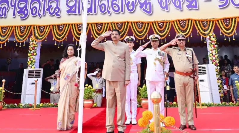 ଭୁବନେଶ୍ୱର ୨୬-୧-୨୦୨୬(ଏସ.ଏମ ) :  ଜି ରାଜଧାନୀ ଭୁବନେଶ୍ୱରର ମହାତ୍ମାଗାନ୍ଧୀ ମାର୍ଗରେ ୭୭ତମ ସାଧାରଣତନ୍ତ୍ର ଦିବସ ଉତ୍ସାହ ଓ ଉଦ୍ଦୀପନାର ସହ ପାଳିତ ହୋଇଯାଇଛି । ଏହି ଉତ୍ସବରେ ରାଜ୍ୟପାଳ ଡ. ହରି ବାବୁ କମ୍ଭମ୍‌ପାଟି ମୁଖ୍ୟ ଅତିଥି ଭାବେ ଯୋଗଦେଇ ଜାତୀୟ ପତାକା ଉତ୍ତୋଳନ କରିବା ସହ ଅଭିବାଦନ ଗ୍ରହଣ କରିଥିଲେ ।