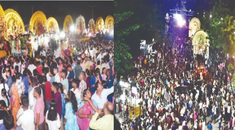 ଭୁବନେଶ୍ୱର ୦୪-୧୦-୨୦୨୫(ଏସ .ଏମ.) : ଆରତ ଜନଙ୍କ ଦୁର୍ଗତି ନାଶ କରିବା ପାଇଁ ଧରାବତରଣ କରିଥିବା ଜଗଜ୍ଜନନୀ ମା ଦୁର୍ଗାଙ୍କୁ ଆଜି ଅଶ୍ରୁଳ ନୟନରେ ମେଲାଣି ଦିଆଯାଇଛି। ପୁଣି ଥରେ ଆରବର୍ଷକୁ ଆସି ଆଶୀର୍ବାଦ କରିବାକୁ ଗୁହାରି କରିଛନ୍ତି। ଏଥିପାଇଁ ରାଜଧାନୀର ରାଜରାସ୍ତା ପାଲଟିଛି ଜନସମୁଦ୍ର। ବାଜା, ବାଣ ରୋଶଣିରେ ଫାଟି ପଡ଼ୁଥିଲା ସାରା ରାଜଧାନୀ। ଭସାଣି ଉତ୍ସବ ସମିତି ପକ୍ଷରୁ ଆୟୋଜିତ ସ୍ଥାନରେ ବିଭିନ୍ନ ପୂଜା କମିଟି ମା’ଙ୍କ ମୃଣ୍ମୟୀ ମୂର୍ତ୍ତି ସହ ଏକତ୍ରିତ ହେବା ପରେ ବିସର୍ଜନ ପାଇଁ ଦୟା ଓ କୁଆଖାଇ ନଦୀପଠାରେ ପ୍ରସ୍ତୁତ ଅସ୍ଥାୟୀ ପୁଷ୍କରିଣୀ ନିକଟକୁ ଯାଇଥିଲେ। ଏଣୁ ଆଜି ମଧ୍ୟାହ୍ନରୁ ଗୋଟିଏ ପରେ ଗୋଟିଏ ମୃଣ୍ମୟୀ ମୂର୍ତ୍ତି, ମେଢ଼ ଶୋଭାଯାତ୍ରାରେ ଆସି ସହିଦନଗର, ନୟାପଲ୍ଲୀ, ଚନ୍ଦ୍ରଶେଖରପୁର ଆଦି ସ୍ଥାନରେ ଏକତ୍ର ହୋଇଥିଲେ। ପରେ ମେଲାଣି ପର୍ବ ଆରମ୍ଭ ହୋଇଥିଲା। ବିଳମ୍ବିତ ରାତି ପର୍ଯ୍ୟନ୍ତ ମେଲାଣି ପର୍ବ ଚାଲିଥିଲା।
