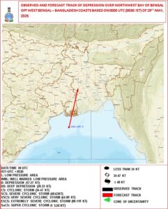 ଭାରତୀୟ ପାଣିପାଗ ବିଭାଗ ଅନୁଯାୟୀ, ଓଡ଼ିଶା ଉପକୂଳର ଉତ୍ତର-ପଶ୍ଚିମ ବଙ୍ଗୋପସାଗରରେ ଥିବା ଏକ ଲଘୁଚାପ କ୍ଷେତ୍ର ଘନୀଭୂତ ହୋଇଛି।ଗୁରୁବାର ସକାଳ ସାଢ଼େ ୫ଟା ସୁଦ୍ଧା, ଘନୀଭୂତ ଲଘୁଚାପ ୨୦.୮ ଡିଗ୍ରି ଉତ୍ତର ଅକ୍ଷାଂଶ ଏବଂ ୮୮.୪ ଡିଗ୍ରି ପୂର୍ବ ଦ୍ରାଘିମା ନିକଟରେ କେନ୍ଦ୍ରିତ ହୋଇଛି।ଆଇଏମଡି ଅନୁଯାୟୀ, ଘନୀଭୂତ ଲଘୁଚାପ ବର୍ତ୍ତମାନ ସାଗର ଦ୍ୱୀପଠାରୁ ପ୍ରାୟ ୧୦୦ କିଲୋମିଟର ଦକ୍ଷିଣ-ଦକ୍ଷିଣପୂର୍ବରେ ରହିଛି। ସେହିପରି ଦୀଘାଠାରୁ ୧୩୦ କିଲୋମିଟର ଦକ୍ଷିଣ-ପୂର୍ବରେ ଏବଂ ପାରାଦୀପଠାରୁ ୧୯୦ କିଲୋମିଟର ପୂର୍ବ-ଉତ୍ତରପୂର୍ବରେ ଏବଂ ବାଂଲାଦେଶର ଖେପୁପାରାର ପଶ୍ଚିମ-ଦକ୍ଷିଣପଶ୍ଚିମରେ ୨୧୦ କିଲୋମିଟର ଦୂରରେ ଅବସ୍ଥିତ।ଆଇଏମଡି ପୂର୍ବାନୁମାନ ସୂଚାଇ ଦେଇଛି ଯେ, ଏହି ଘନୀଭୂତ ଲଘୁଚାପ ଉତ୍ତର ଦିଗକୁ ଗତି କରି ଗଭୀର ଅବପାତରେ ପରିଣତ ହେବାର ସମ୍ଭାବନା ରହିଛି। ଗୁରୁବାର ଅପରାହ୍ନ ସୁଦ୍ଧା ଏହା ସାଗର ଦ୍ୱୀପ ଏବଂ ଖେପୁପାରା ମଧ୍ୟରେ ପଶ୍ଚିମବଙ୍ଗ-ବାଂଲାଦେଶ ଉପକୂଳ ଅତିକ୍ରମ କରିବାର ସମ୍ଭାବନା ରହିଛି।