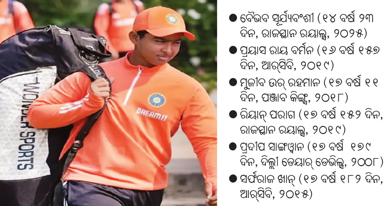 ରାଜସ୍ଥାନ ରୟାଲ୍‌ସର କିଶୋର କ୍ରିକେଟର୍ ବୈଭବ ସୂର୍ଯ୍ୟବଂଶୀ ନୂଆ ଇତିହାସ ରଚିଛନ୍ତି। ୧୪ ବର୍ଷ ୨୩ ଦିନ ବୟସରେ ଲକ୍ଷ୍ନୌ ବିପକ୍ଷରେ ପଦାର୍ପଣ କରି ଆଇପିଏଲ୍‌ ଖେଳିବାରେ ସର୍ବକନିଷ୍ଠ ଖେଳାଳି ହୋଇଛନ୍ତି।