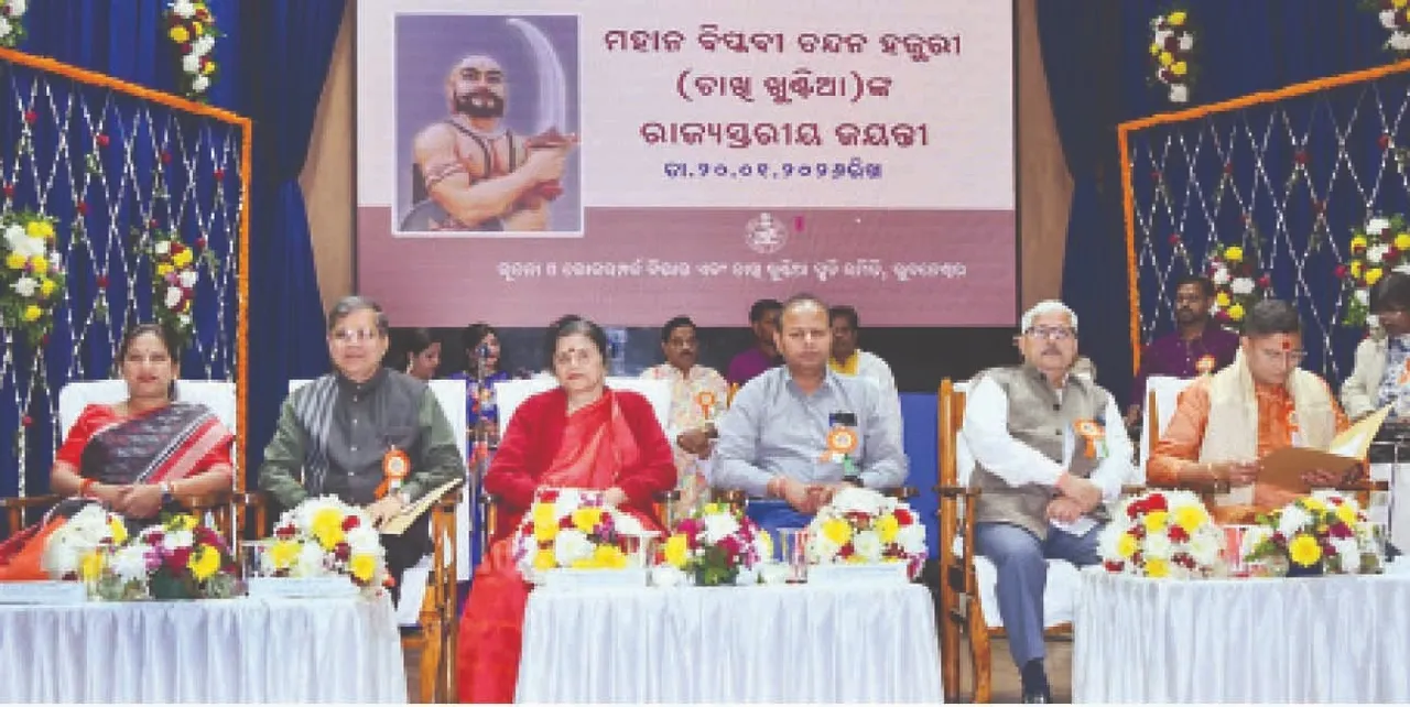 ଭୁବନେଶ୍ୱର ୨୨-୦୧-୨୦୨୬(ଏସ.ଏମ ) : ଭାରତ ସ୍ୱାଧୀନତା ସଂଗ୍ରାମରେ ଯେଉଁ ବୀର ସନ୍ତାନ ନିଜ ଜୀବନକୁ ଉତ୍ସର୍ଗ କରି ଦେଶମାଟିକୁ ପରାଧୀନତାର ବନ୍ଧନରୁ ମୁକ୍ତ କରିଥିଲେ, ସେମାନଙ୍କ ମଧ୍ୟରେ ମହାନ ବିପ୍ଳବୀ ଚନ୍ଦନ ହଜୁରୀ (ଚାଖି ଖୁଣ୍ଟିଆ) ଅନ୍ୟତମ। ପ୍ରଭୁ ଶ୍ରୀଜଗନ୍ନାଥଙ୍କର ପରମ ଭକ୍ତ ଓ ସେବକ ଥିବା ଚନ୍ଦନ ହଜୁରୀ ନିଜର ବଳିଷ୍ଠ ନେତୃତ୍ୱ, ଦେଶପ୍ରେମ ଓ ଅତୁଳନୀୟ ତ୍ୟାଗ ମାଧ୍ୟମରେ ସ୍ୱାଧୀନତା ସଂଗ୍ରାମକୁ ଏକ ନୂଆ ଦିଗ ଦେଇଥିଲେ। ତାଙ୍କର ଆଦର୍ଶ, ସଂଗ୍ରାମ ଓ ସମାଜସେବା ଓଡ଼ିଆ ଜନମାନସରେ ସଦାସର୍ବଦା ଚିରସ୍ମରଣୀୟ ହୋଇ ରହିବ ବୋଲି ତାଙ୍କ ରାଜ୍ୟସ୍ତରୀୟ ଜୟନ୍ତୀ ପାଳନ ଅବସରରେ ବକ୍ତାମାନେ ମତବ୍ୟକ୍ତ କରିଛନ୍ତି। ସୂଚନା ଓ ଲୋକସମ୍ପର୍କ ବିଭାଗ ଏବଂ ‘ଚାଖି ଖୁଣ୍ଟିଆ ସ୍ମୃତି ସମିତି’ର ମିଳିତ ଆନୁକୂଲ୍ୟରେ ଜୟଦେବ ଭବନଠାରେ ଆୟୋଜିତ ଏହି ରାଜ୍ୟସ୍ତରୀୟ ଜୟନ୍ତୀ ସମାରୋହରେ ସୂଚନା ଓ ଲୋକସଂପର୍କ ବିଭାଗର ନିର୍ଦ୍ଦେଶକ ଅନୁଜ କୁମାର ଦାଶ ପଟ୍ଟନାୟକ ଯୋଗଦେଇ ଚନ୍ଦନ ହଜୁରୀଙ୍କ ଦେଶପ୍ରେମ, ବୀରତ୍ୱ ଓ ଐତିହାସିକ ଅବଦାନ ଉପରେ ଆଲୋକପାତ କରିଥିଲେ। ସେ କହିଥିଲେ, ଚନ୍ଦନ ହଜୁରୀ ଏକାଧାରରେ ଜଣେ ବୀର ବିପ୍ଳବୀ, ଦେଶଭକ୍ତ, ସେବକ ଓ ସମାଜ ସଂସ୍କାରକ ଥିଲେ, ଯାହାଙ୍କ ଜୀବନାଦର୍ଶ ଆଗାମୀ ପିଢ଼ି ପାଇଁ ପ୍ରେରଣାର ଉତ୍ସ। ଆମ ଦେଶ ସ୍ବାଧୀନ ହୋଇଛି।
