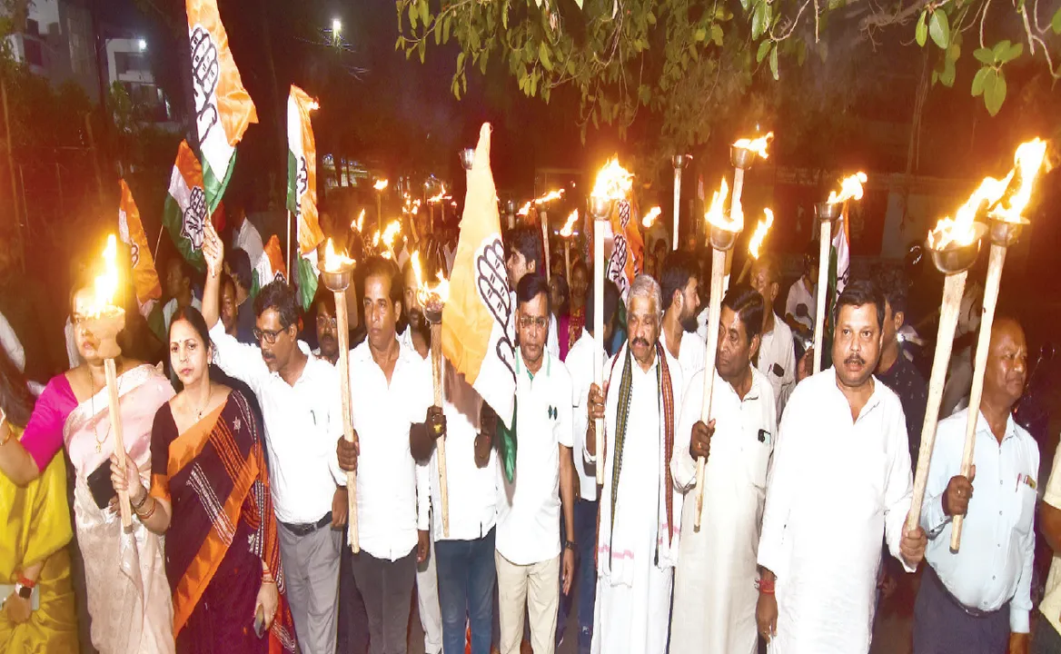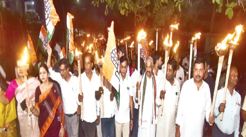ମସାଲ ଧରି ରାଜରାସ୍ତାକୁ ଓଲ୍ହାଇଲେ କଂଗ୍ରେସ ନେତା ଓ କର୍ମୀ