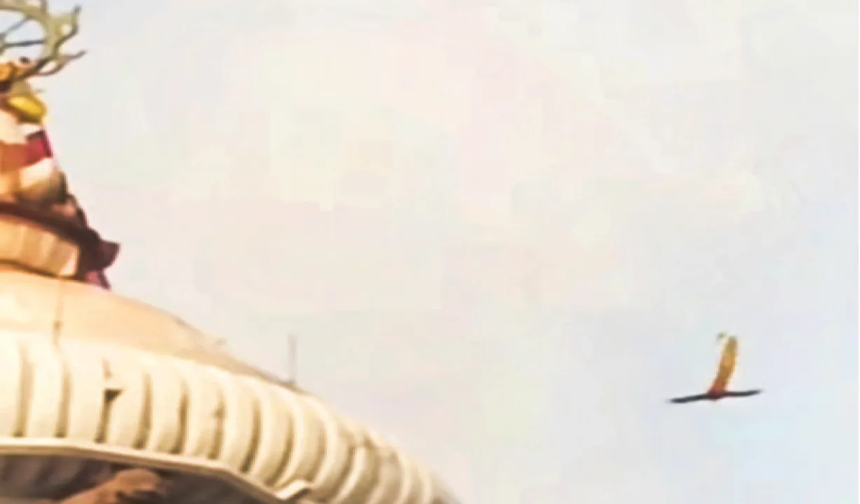 ଶ୍ରୀମନ୍ଦିର ନୀଳଚକ୍ର ଚୂଡ଼ାରୁ ଏକ ହଳଦୀ ରଙ୍ଗର ବାନାକୁ ଚିଲ ଦୁଇ ପଞ୍ଝାରେ ଧରି ମନ୍ଦିର ଚତୁଃପାର୍ଶ୍ବରେ ଉଡ଼ୁଥିବା ସମୟର ଦୃଶ୍ୟ ଏବେ ଭାଇରାଲ୍ ହେବାରେ ଲାଗିଛି।