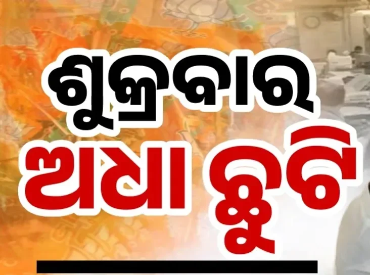 ପ୍ରଧାନମନ୍ତ୍ରୀ ନରେନ୍ଦ୍ର ମୋଦୀଙ୍କ ଭୁବନେଶ୍ବର ଗସ୍ତ ସମୟରେ ବ୍ୟାପକ ଜନସମାଗମ ଏବଂ ଟ୍ରାଫିକ୍ ଭିଡ଼ର ଆଶଙ୍କା କରି, ଓଡ଼ିଶା ସରକାର ଜୁନ୍ ୨୦ରେ ଭୁବନେଶ୍ୱର ମ୍ୟୁନିସିପାଲ୍ କର୍ପୋରେସନ୍ (ବିଏମସି) ଅଧୀନରେ କାର୍ଯ୍ୟ କରୁଥିବା ସମସ୍ତ ସରକାରୀ କାର୍ଯ୍ୟାଳୟ ପାଇଁ ଅଧା ଦିନ ଛୁଟି ଘୋଷଣା କରିଛନ୍ତି…
