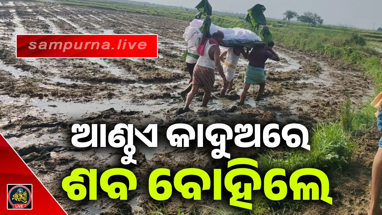 ଆଣ୍ଠୁଏ କାଦୁଅରେ ୨ କିମି ଯାଏ ଶବ ବୋହିଲେ ଗାଁଲୋକେ