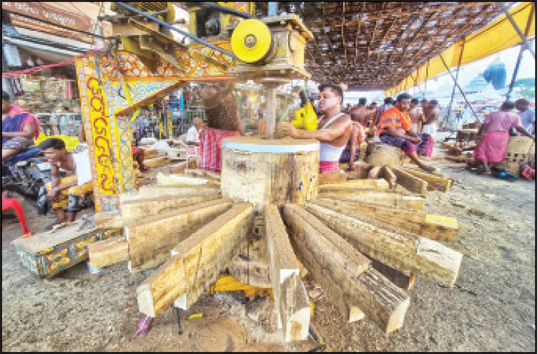 ଏଥିସହ ଆଜି ସମାନ୍ତରାଳ ଭାବେ ତିନି ରଥର ୧୧ଟି ଗୁଜ, ୯ଟି ଜଳ ଯନ୍ତ୍ର, ୪ଟି ଲେଖାଏଁ କୁଡୁକା ଚଉପଟ କାର୍ଯ୍ୟ ଶେଷ ହୋଇଛି। ରିଖ ଗୁଜ ଚଉପଟ କାର୍ଯ୍ୟ ଶେଷ ପର୍ଯ୍ୟାୟରେ ପହଞ୍ଚିଛି। ଦୋଳ ବେଦୀସ୍ଥିତ ଅସ୍ଥାୟୀକମାରଶାଳରେ ତିନି ରଥର ଓଝା ମହାରଣା ସେବକମାନେ ନାହାକା ତୁମ୍ବ ଗୁଡ଼ିକର ପନ୍ଦାରି ଏବଂ ତୁମ୍ବ ବଳା ଶେଷ କରିଛନ୍ତି। ପନ୍ଦାରିର ମାଠା କାର୍ଯ୍ୟ ସହ ପନ୍ଦାରି ଚାବି ଏବଂ ଅର କଣ୍ଟା ନିର୍ମାଣ ଜାରି ରଖିଛନ୍ତି। ଦୋଳ ବେଦୀଠାରେ ମହାପ୍ରଭୁଙ୍କ ସ୍ନାନଯାତ୍ରା ଏବଂ ରଥଯାତ୍ରାରେ ମହାପ୍ରଭୁଙ୍କ ସେବା ପୂଜା ପାଇଁ ଆବଶ୍ୟକ କାଠ ନିର୍ମିତ ସରଞ୍ଜାମ ତିଆରି କରାଯାଉଛି। ଶ୍ରୀମନ୍ଦିର ବଢ଼େଇ କର୍ମଚାରୀ ବସନ୍ତ ମହାରଣାଙ୍କ ସହଯୋଗରେ ପାହି ମହାରଣା ଏହାକୁ ନିର୍ମାଣ କରୁଛନ୍ତି। ଆଜିସୁଦ୍ଧା ପାଟ ଦଉଡ଼ି ବୋଳିବା ପାଇଁ ବାଉଁଶ ନଳ, ବାଉଁଶ କାଠି, ପୂଜାପଣ୍ଡା ସେବକଙ୍କ ପାଇଁ କୁରୁମ ପିଢ଼ା, ରନ୍ଧା କାର୍ଯ୍ୟ ପାଇଁ ଅଞ୍ଜନା କାଠି ନିର୍ମାଣ ଶେଷ କରିଛନ୍ତି। ତିନି ରଥ ପାଇଁ ୭୮ ମହାରଣା ସେବକ, ୪ କରତୀ ସେବକ, ୧୫ ଓଝା କମାର ସେବକ, ୨୧ ରୂପକାର ସେବକ, ୬୩ ଜଣ ଭୋଇ ସେବକ, ଜଣେ ପାହି ମହାରଣା, ୨ ଜଣ ତୁମ୍ବ ବିନ୍ଧ କାରିଗର ଓ ଜଣେ ରଥଖଳା ସହାୟକ, ଏହିପରି ୧୮୫ ଜଣ ରଥ ନିର୍ମାଣକାରୀ ସେବକ ସେବା ଯୋଗାଇ ଦେଇଛନ୍ତି।