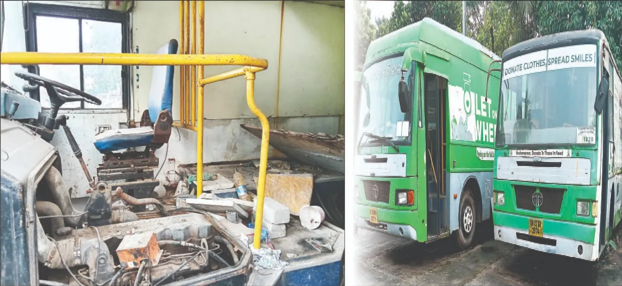 କୋଭିଡ୍ କଟକଣା ହଟିବା ପରେ ପୁଣିଥରେ ଏହା ଆରମ୍ଭ ହେବ ବୋଲି ବିଏମ୍ସି ଅଧିକାରୀମାନେ କହିଥିଲେ। ଇତିମଧ୍ୟରେ କୋଭିଡ୍ କଟକଣା ହଟିବା ୩ ବର୍ଷ ବିତିଗଲାଣି, କିନ୍ତୁ ବନ୍ଦ ହୋଇଥିବା ଏହି ମହତ ଯୋଜନା ଆରମ୍ଭ ହୋଇପାରିନି। ଫଳସ୍ବରୂପ ଏହି ବସ୍ ପଡ଼ି ପଡ଼ି ନଷ୍ଟ ହୋଇଗଲାଣି। ଷ୍ଟିୟରିଂ, ସିଟ୍, ଇଂଜିନ୍ ସବୁ ଖତ ହୋଇଗଲାଣି। ସେପଟେ ହକି ବିଶ୍ବକପ ଓ ଅନ୍ୟ ସମୟରେ ଜନସାଧାରଣଙ୍କ ସୁବିଧା ଦୃଷ୍ଟିରୁ ତିନିଟି ଭ୍ରାମ୍ୟମାଣ ଶୌଚାଳୟ(ଓଆର-୦୨ବିୱାଇ-୩୨୨୪, ଓଆର-୦୨ବିଏଚ୍-୯୨୭୧ ଓ ଓଡି-୦୨ସି-୯୭୯୩)ର ବ୍ୟବସ୍ଥା ହୋଇଥିଲା। ବଡ଼ ବଡ଼ ବସ୍ରେ ହୋଇଥିବା ଏହି ଶୌଚାଳୟ ଅତ୍ୟାଧୁନିକ ଓ ସ୍ବୟଂଚାଳିତ ଥିଲା। ବସ୍ଷ୍ଟାଣ୍ଡ୍, ସଭାସମିତି, ପ୍ରଦର୍ଶନୀ ଭଳି ଜନଗହଳିପୂର୍ଣ୍ଣ ସ୍ଥାନରେ ଏହାର ବ୍ୟବହାର ହେଉଥିଲା। କିନ୍ତୁ ରକ୍ଷଣାବେକ୍ଷଣ ଅଭାବରୁ ଉଭୟ ଶୌଚାଳୟ ଓ ବସ୍ ଭାଙ୍ଗିରୁଜି ଗଲାଣି। ଏହି ତିନି ଭ୍ରାମ୍ୟମାଣ ଶୌଚାଳୟ ପଡ଼ି ପଡ଼ି ଖତ ହୋଇଗଲାଣି। ଶୌଚାଳୟର ଅତ୍ୟାଧୁନିକ ଆସବାବ କେହି ତାଡ଼ି ନେଲେଣି। ବସ୍ର ଡ୍ରାଇଭର ସିଟ୍ ଓ ଅନ୍ୟାନ୍ୟ ସରଞ୍ଜାମ ବି ଚୋରି ହୋଇଗଲାଣି। ମିଳିଥିବା ସୂଚନା ମୁତବାକ, ଖତ ହେଉଥିବା ଏହି ଗାଡ଼ି ସବୁ ଭୁବନେଶ୍ବର ପୁରୀ ଟ୍ରାନ୍ସପୋର୍ଟ ସର୍ଭିସେସ୍ ଲିମିଟେଡ୍(ବର୍ତ୍ତମାନର କ୍ରୁଟ୍) ନାମରେ କିଣାଯାଇଥିଲା। କିନ୍ତୁ ବ୍ୟବହାର କରୁଥିଲା ଭୁବନେଶ୍ବର ମହାନଗର ନିଗମ। ବିଏମ୍ସି କର୍ତ୍ତୃପକ୍ଷ କହିଛନ୍ତି, ଆମେ ପୁରୁଣା ଓ ଅବ୍ୟବହୃତ ଗାଡ଼ିକୁ କବାଡ଼ି ଦରରେ ବିକ୍ରି କରିବାକୁ ନିଷ୍ପତ୍ତି ନେଇଛୁ। ସହାୟ ରଥ, ଭ୍ରାମ୍ୟମାଣ ଶୌଚାଳୟ ପୁରୁଣା ହୋଇଗଲାଣି। ଏହି ଗାଡ଼ି ବ୍ୟବହାର ଯୋଗ୍ୟ କି ନୁହେଁ, ଯାଞ୍ଚ କରି ଆବଶ୍ୟକ ପଦକ୍ଷେପ ନେବୁ।